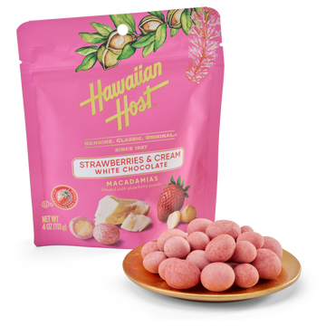 - 1 Bag of Hawaiian Host Strawberries & Cream White Chocolate Macadamias