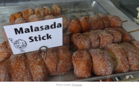 Youʻll never forget these! Portuguese style donut without a hole, covered in sugar, and can be served without or with a delicious filling like dobash or guava! Tastes best hot & fresh.