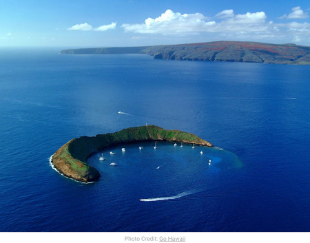 This is a crescent moon shaped island 3 miles from the south coast of Maui. Take a boat for an incredible adventure and experience ocean life by diving among the coral reefs and tropical fish. Spot the state fish, the humuhumunukunukuāpuaʻa! It looks like the one on the right.