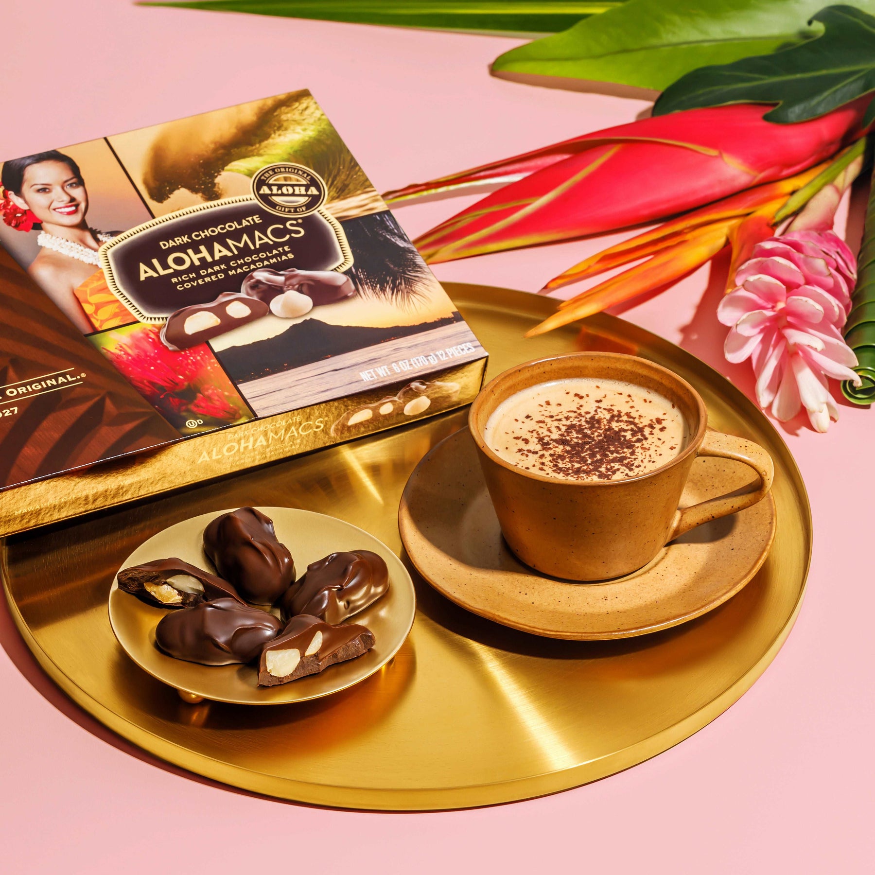 Consider our AlohaMacs collection an edible postcard from paradise! Featuring our finest macadamias coated in our silky, hand-crafted dark chocolate, this Island original makes a delightful souvenir for everyone on your gift list.